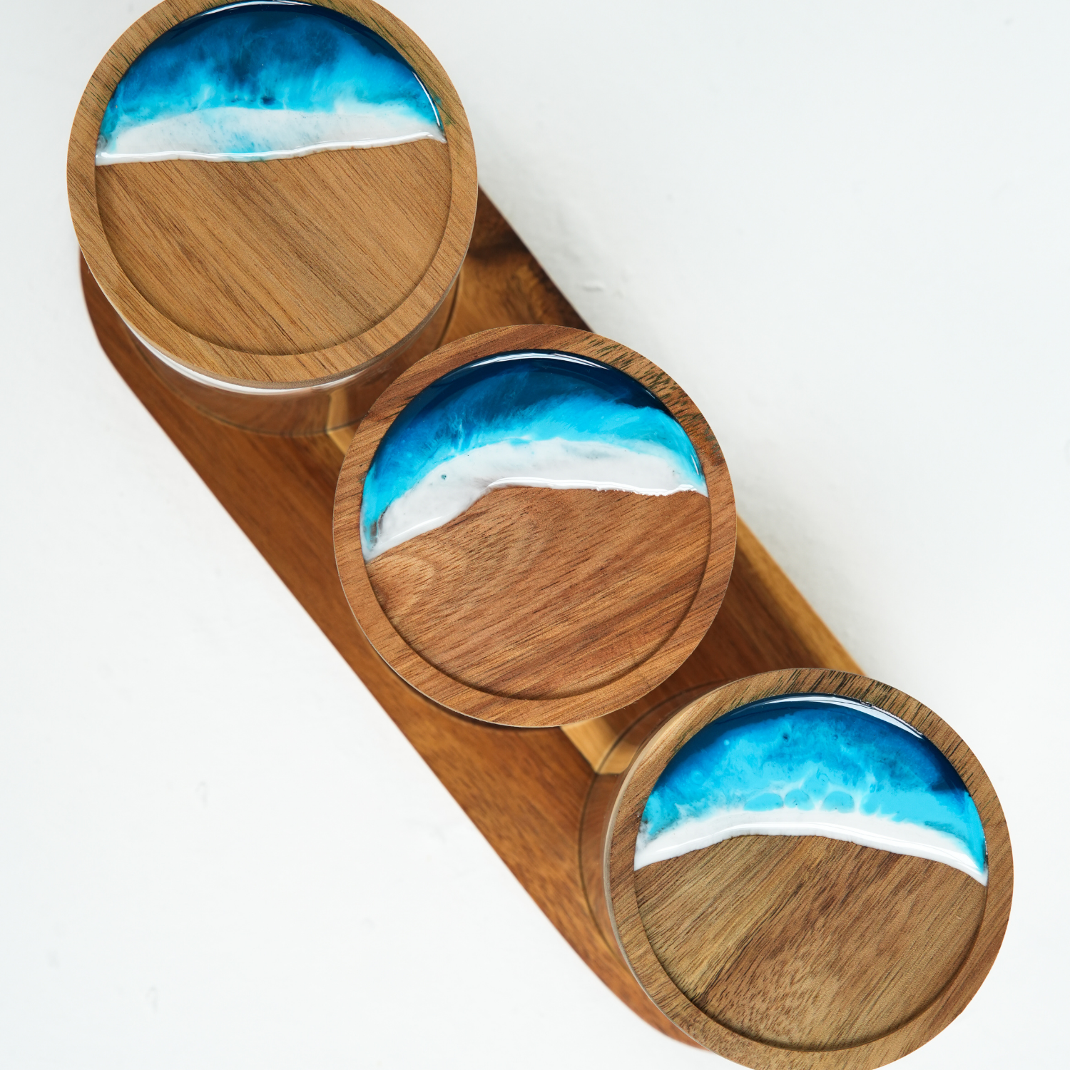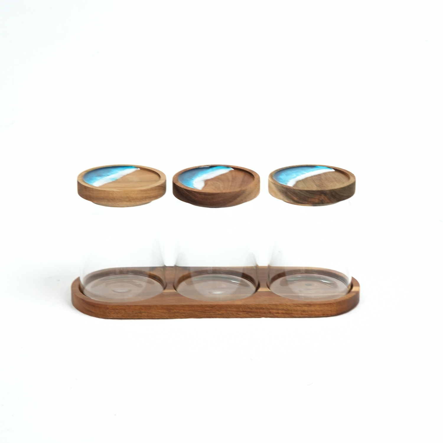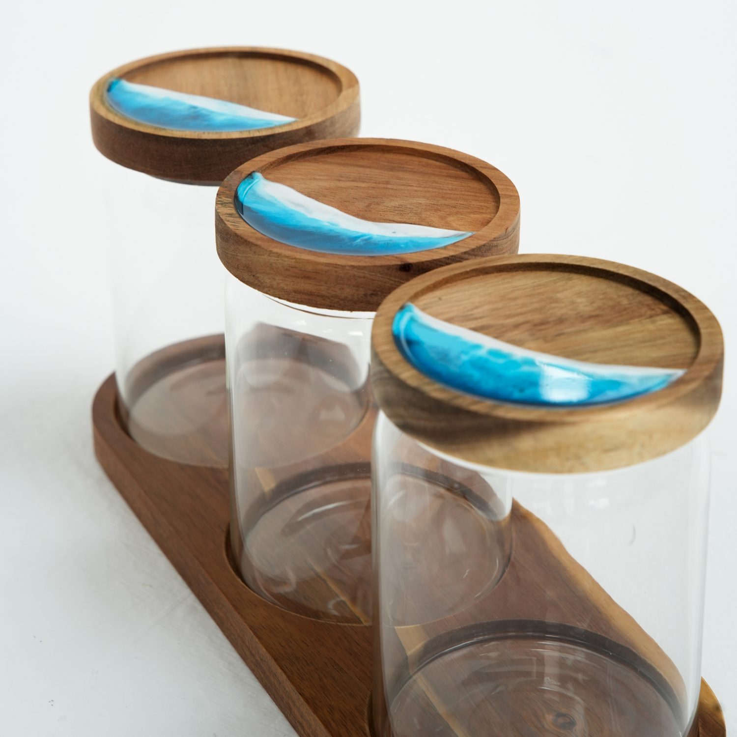 3'lü Epoksi Akasya Kapaklı Kavanoz Seti